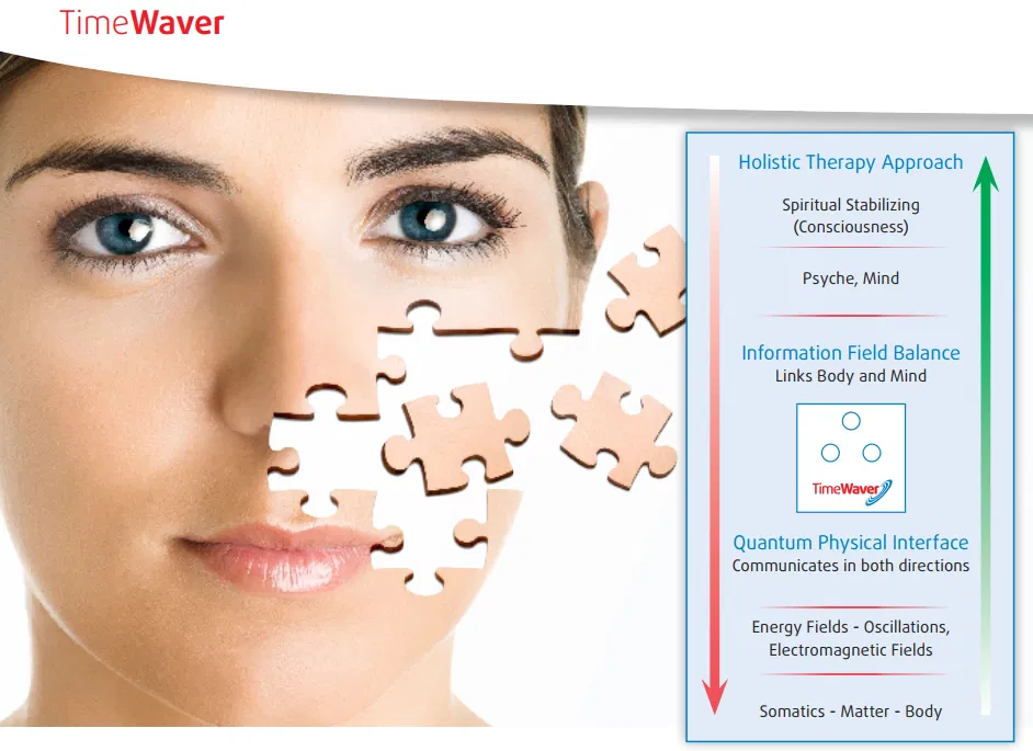 Estas análisis de Time Waver no se refieren al cuerpo físico como en el diagnóstico médico. La medicina del campo informacional, por el contrario, se basa en la teoría del campo informacional que interactúa física y mentalmente, tal como se describe aquí; el punto de partida para el control de todos los procesos tangibles, energéticos y psíquicos en este modelo. Time Waver quiere ayudarle a considerar al ser humano en su totalidad, ¡desde la mente hasta la estructura celular! Porque creemos que un ser humano es más que solo sus partes analizables por separado.